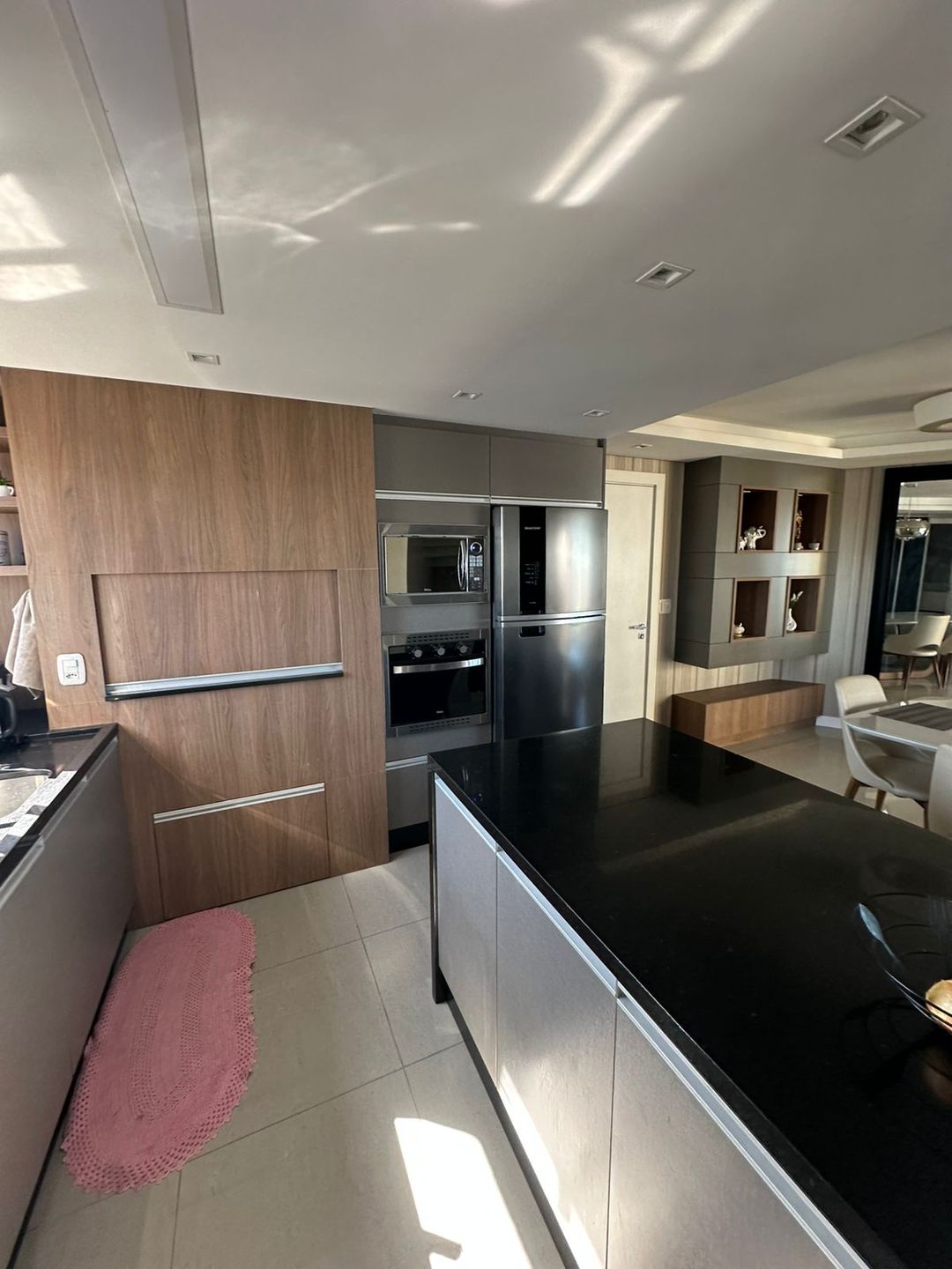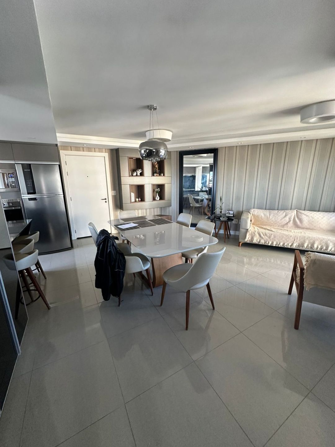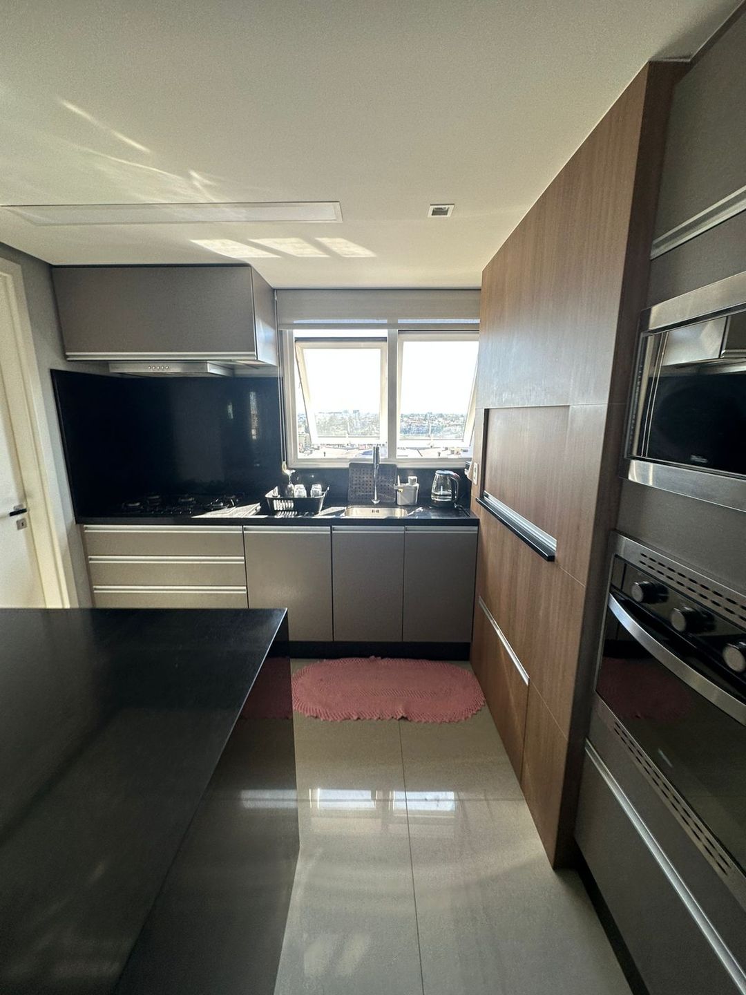 Mobiliado Fica os móveis sob medida, coifa e cooktop.